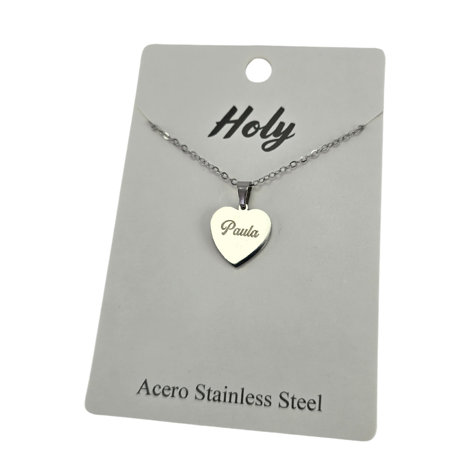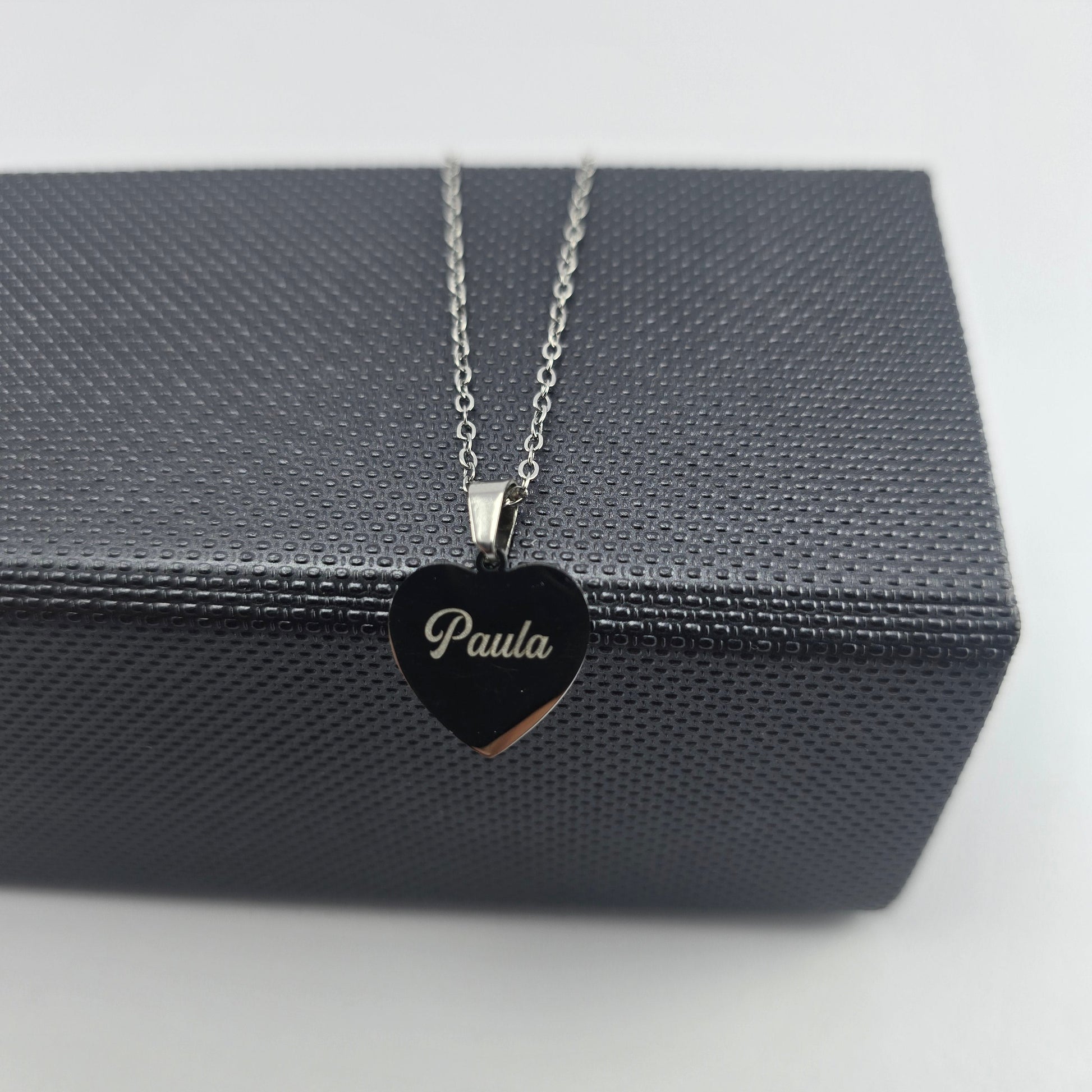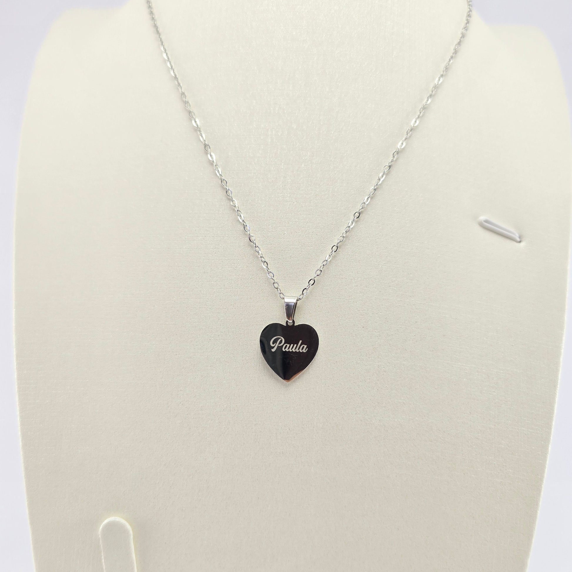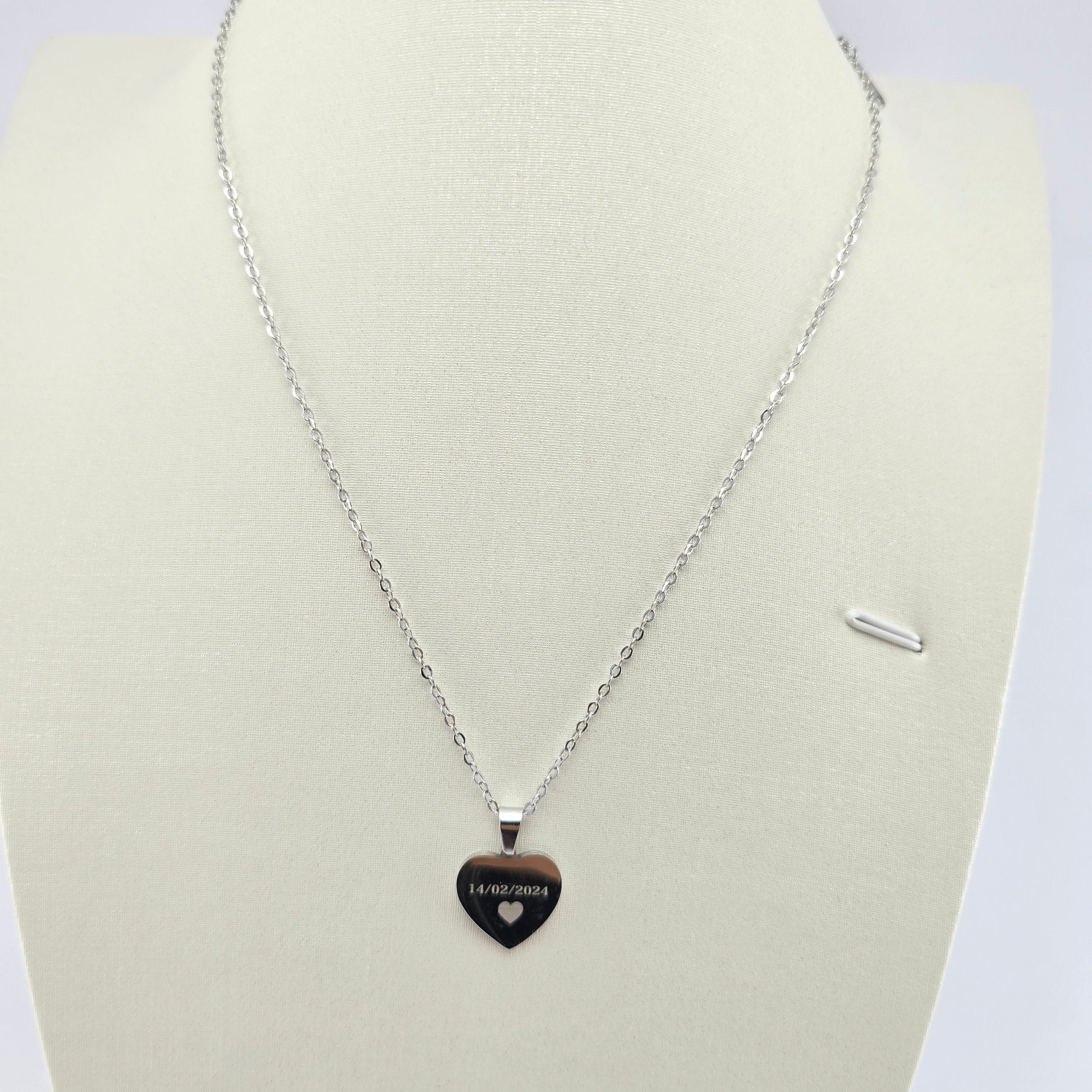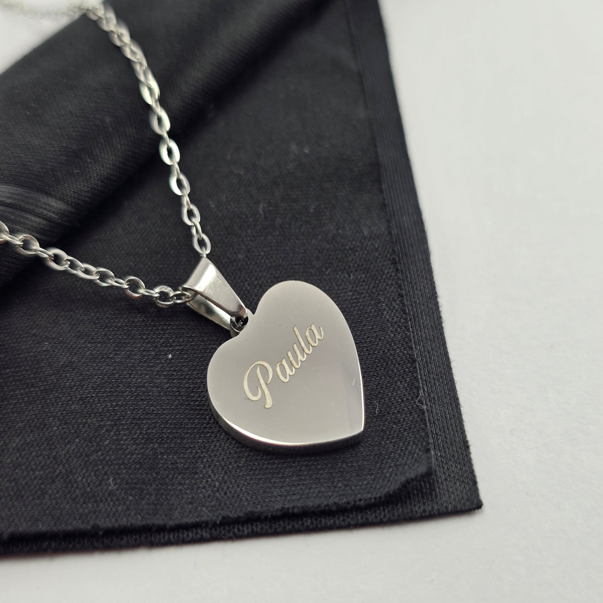 Collar de acero inoxidable es el regalo perfecto para esa persona especial. Con un corazón personalizado con su nombre, iconos y fechas importantes, este collar es una manera única y hermosa de mostrar su amor y afecto. Hecho con acero duradero, este collar durará por años como un símbolo eterno de su amor.